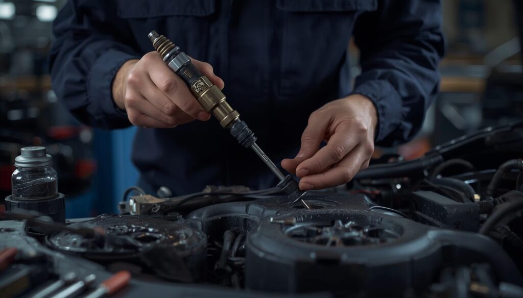 Fuel injectors work like a spray nozzle. They take fuel from the tank and spray it into the engine at the right time. This process is controlled by the car’s computer system.